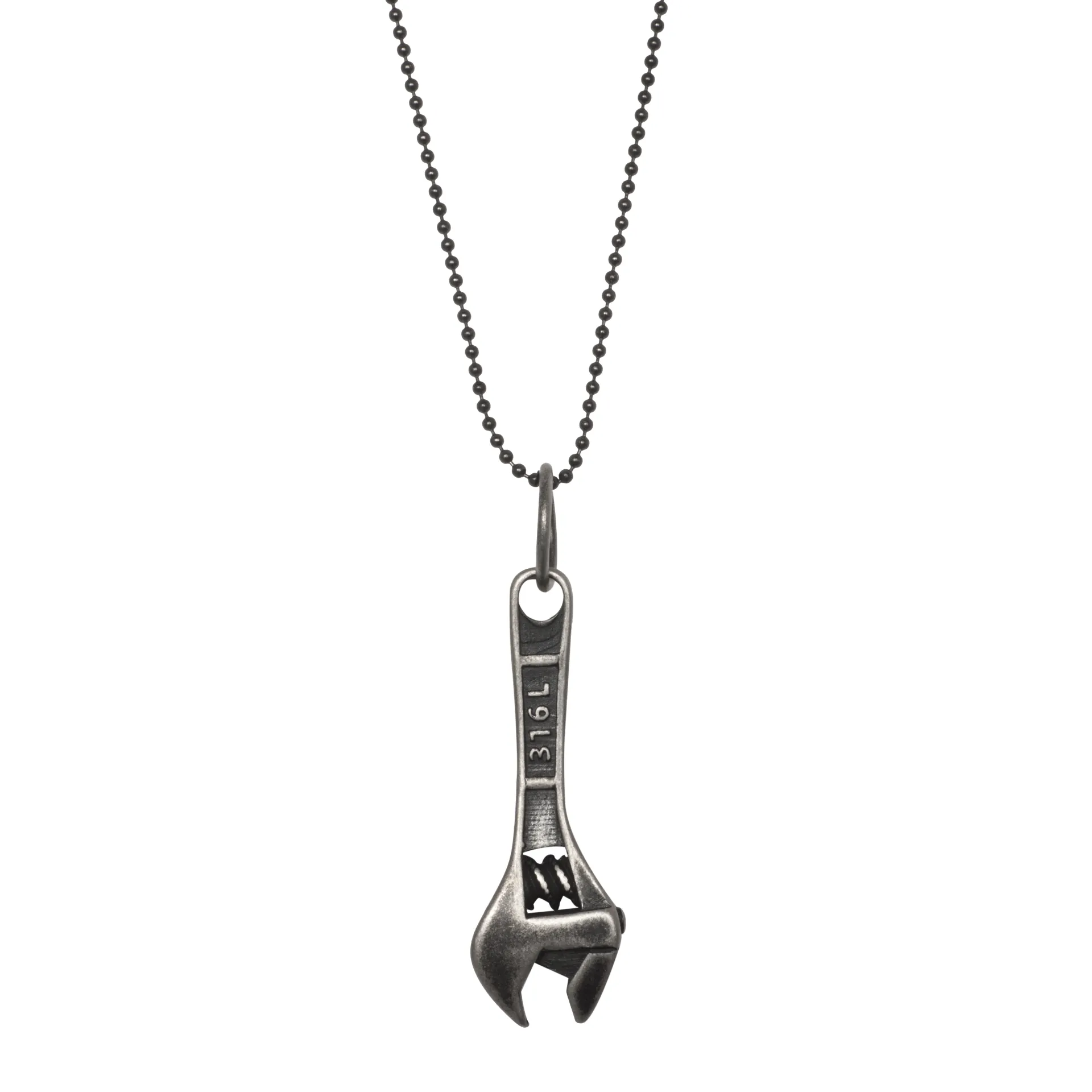 Μακρύ κολιέ ανδρικό 80 εκατοστών, με γαλλικό κλειδί κάβουρα ιδανικό δώρο για υδραυλικό, με ανοξείδωτο ατσάλι  και μαύρο ρόδιο από τον TRIBUTE JEWELS.