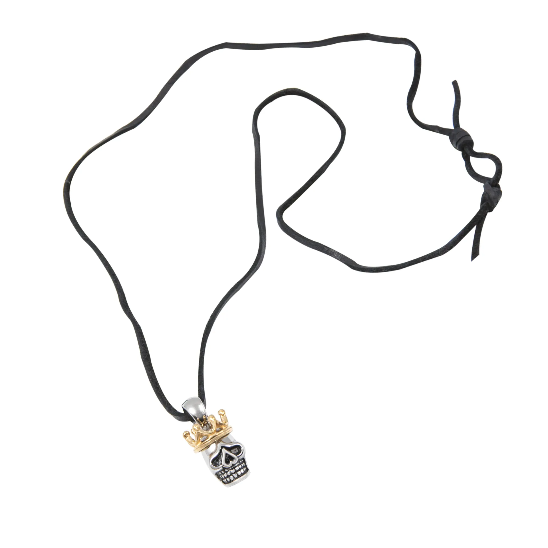 TRIBUTE, ανοξείδωτο ατσάλι, unisex, κολιέ, νεκροκεφαλή με κορώνα με δερμάτινο, κορδόνι,