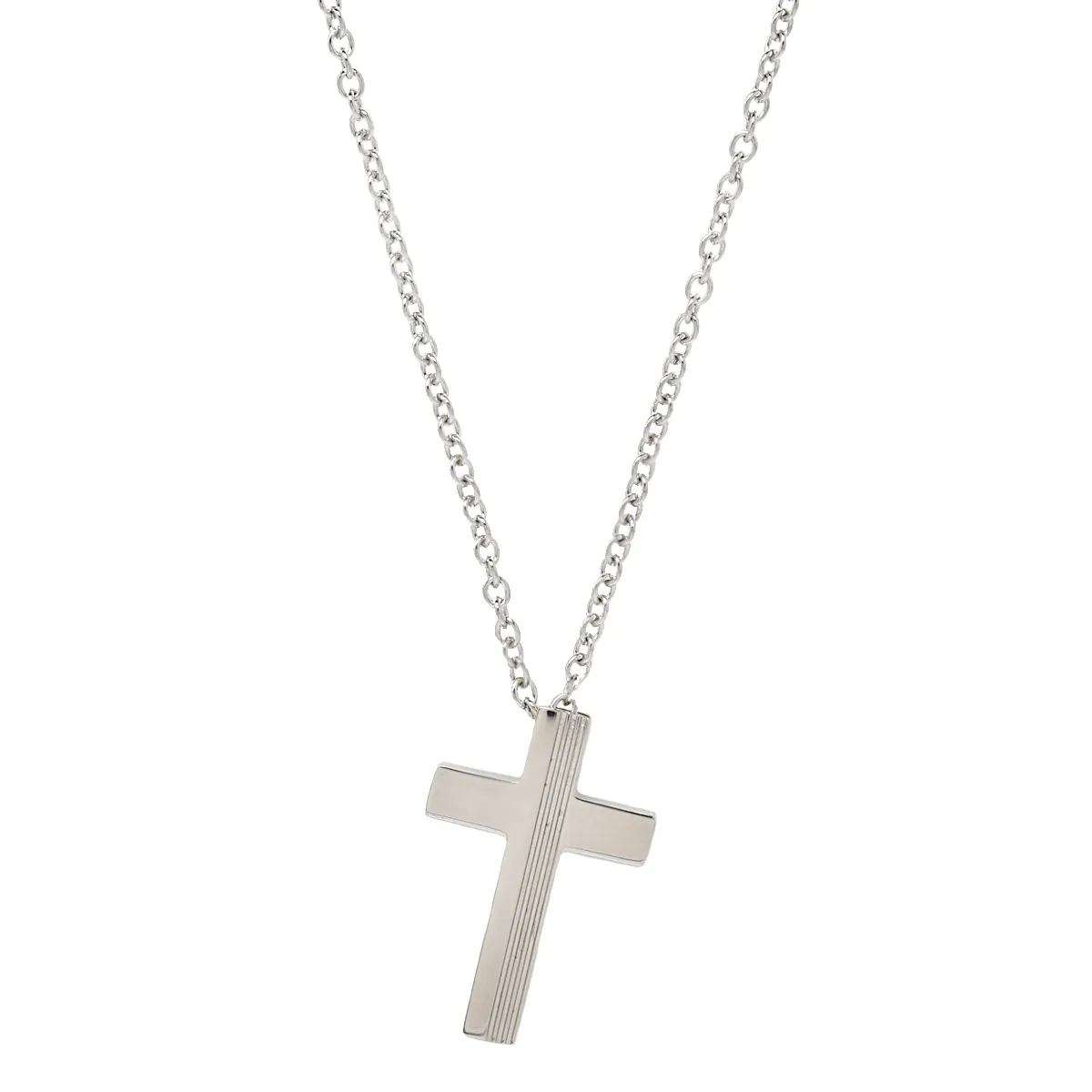 Λουστράτο κολιέ από ανοξείδωτο ατσάλι με σταυρό. Με αλυσίδα.