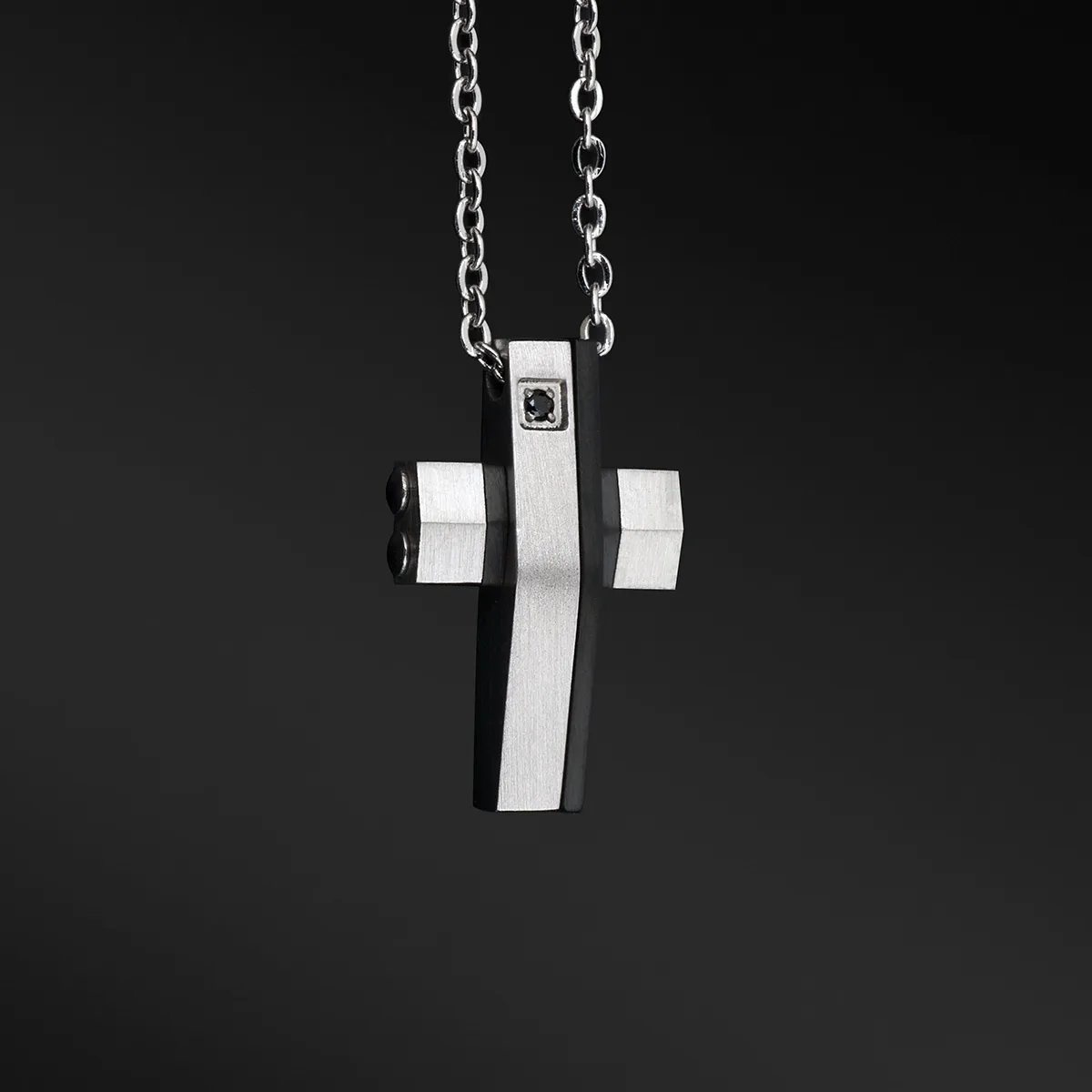 TRIBUTE, αντρικό, κολιέ, από, ανοξείδωτο, ατσάλι με σταυρό, μαύρο, επιπλατίνωμα,
