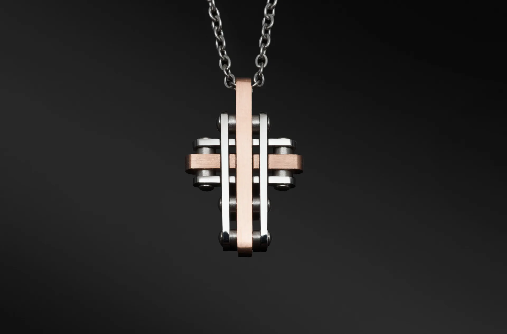 TRIBUTE, αντρικό, κολιέ, από, ανοξείδωτο, ατσάλι, σταυρό, ροζ, επιχρύσωμα,