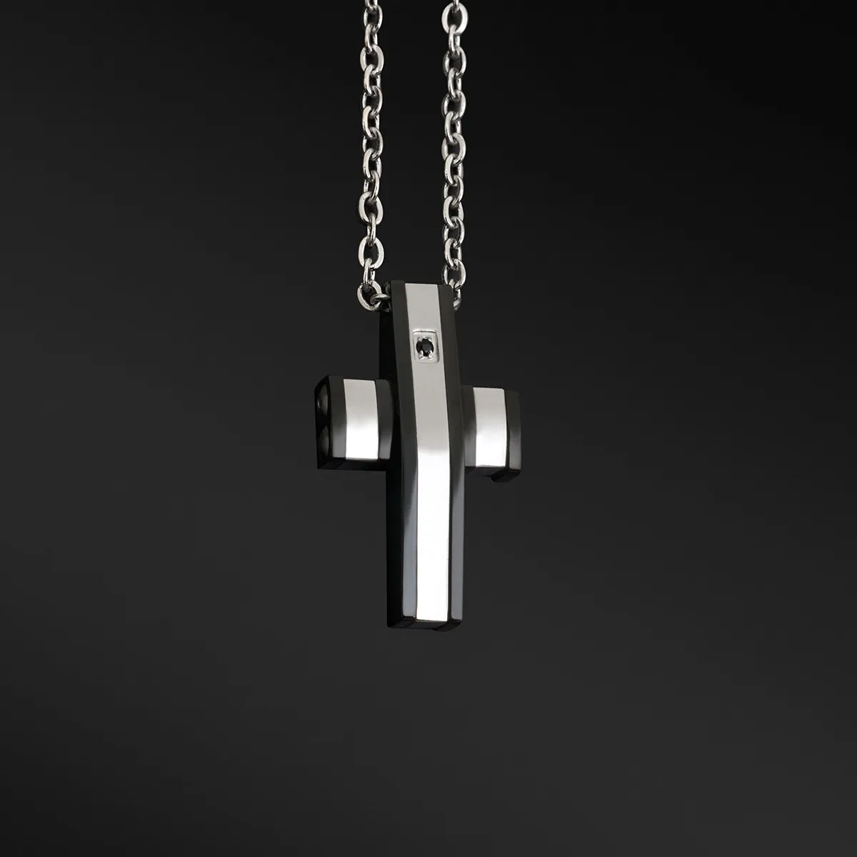 TRIBUTE, αντρικό, κολιέ, από, ανοξείδωτο, ατσάλι, με ζιργόν, μαύρο, επιπλατίνωμα,