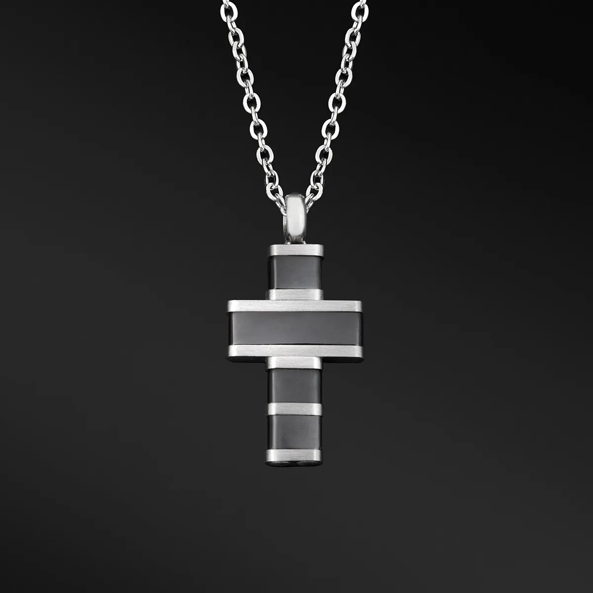 TRIBUTE, αντρικό, ματ, κολιέ, από, ανοξείδωτο, ατσάλι, με σταυρό, μαύρο, επιπλατίνωμα,