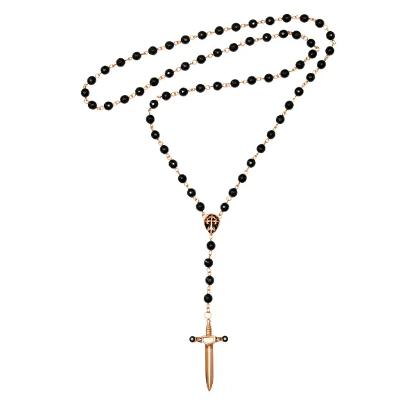 ΑΝΔΡΙΚΟ ΚΟΛΙΕ ΑΠΟ ΑΝΟΙΞΕΙΔΩΤΟ ΑΤΣΑΛΙ, ΡΟΖΑΡΙΟ ΜΕ ΜΑΥΡΟ ΖΙΡΓΚΟΝ, ΡΟΖ ΧΡΥΣΟ, ΜΑΥΡΟ ΟΝΥΧΑ & ΣΤΑΥΡΟ ΣΕ ΣΧΗΜΑ ΣΠΑΘΙΟΥ