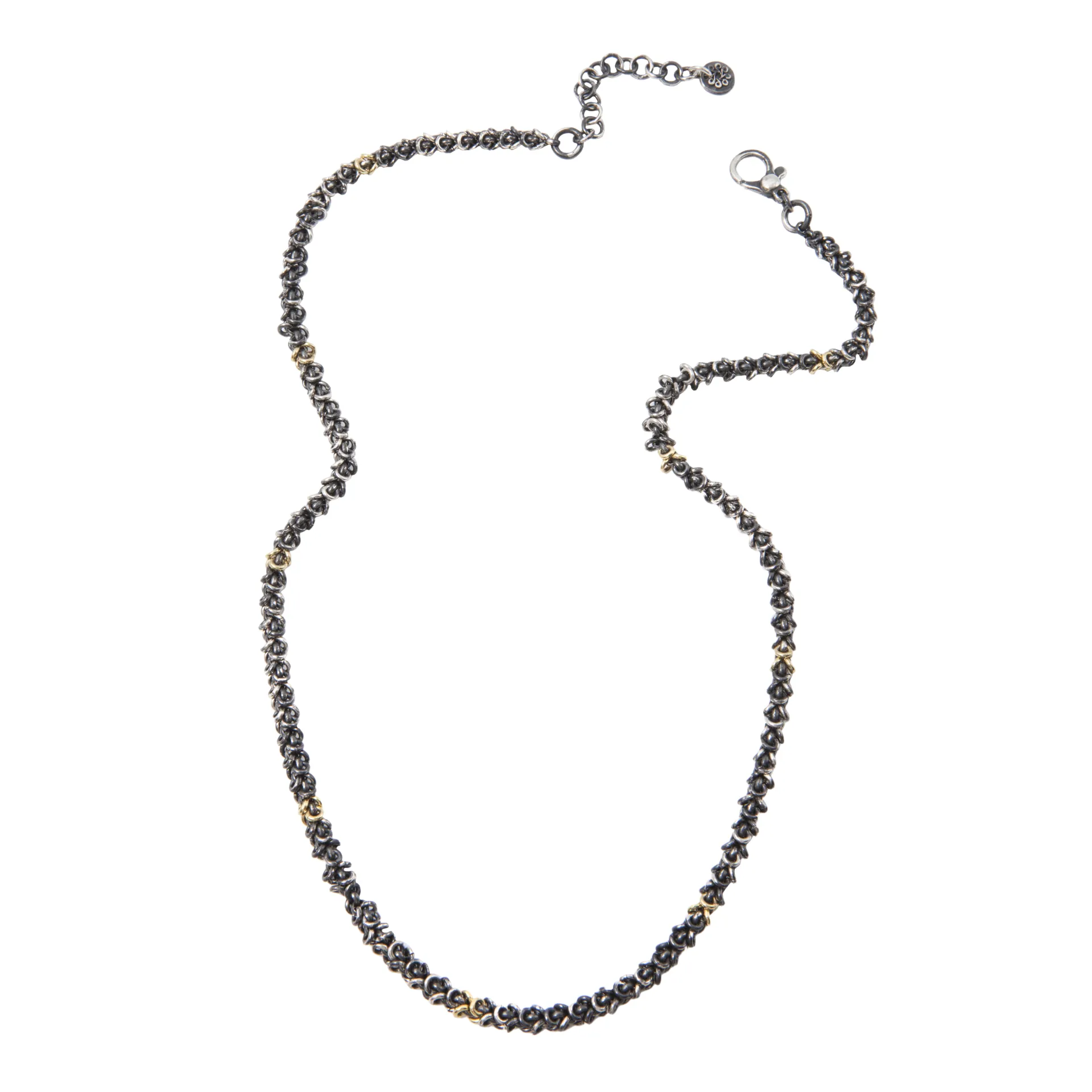 TRIBUTE, αντρικό κολιέ με 925 ασήμι & 18 καρατίων χρυσό, με μαύρο ρόδιο, 52+6 εκατοστά αλυσίδα επέκτασης,0330282801