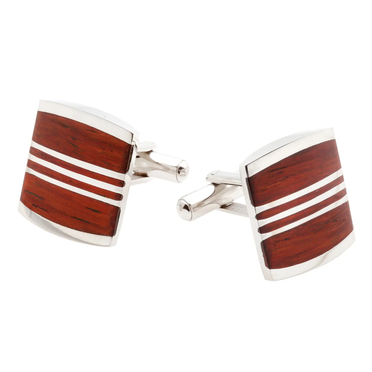 Μανικετόκουμπα από Ανοξείδωτο ατσάλι με ξύλινες ριγέ λεπτομέρειες