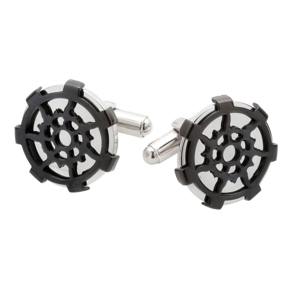 Μανικετόκουμπα από Ανοξείδωτο ατσάλι με δυο επιπλατινώματα: λευκό και μαύρο.
