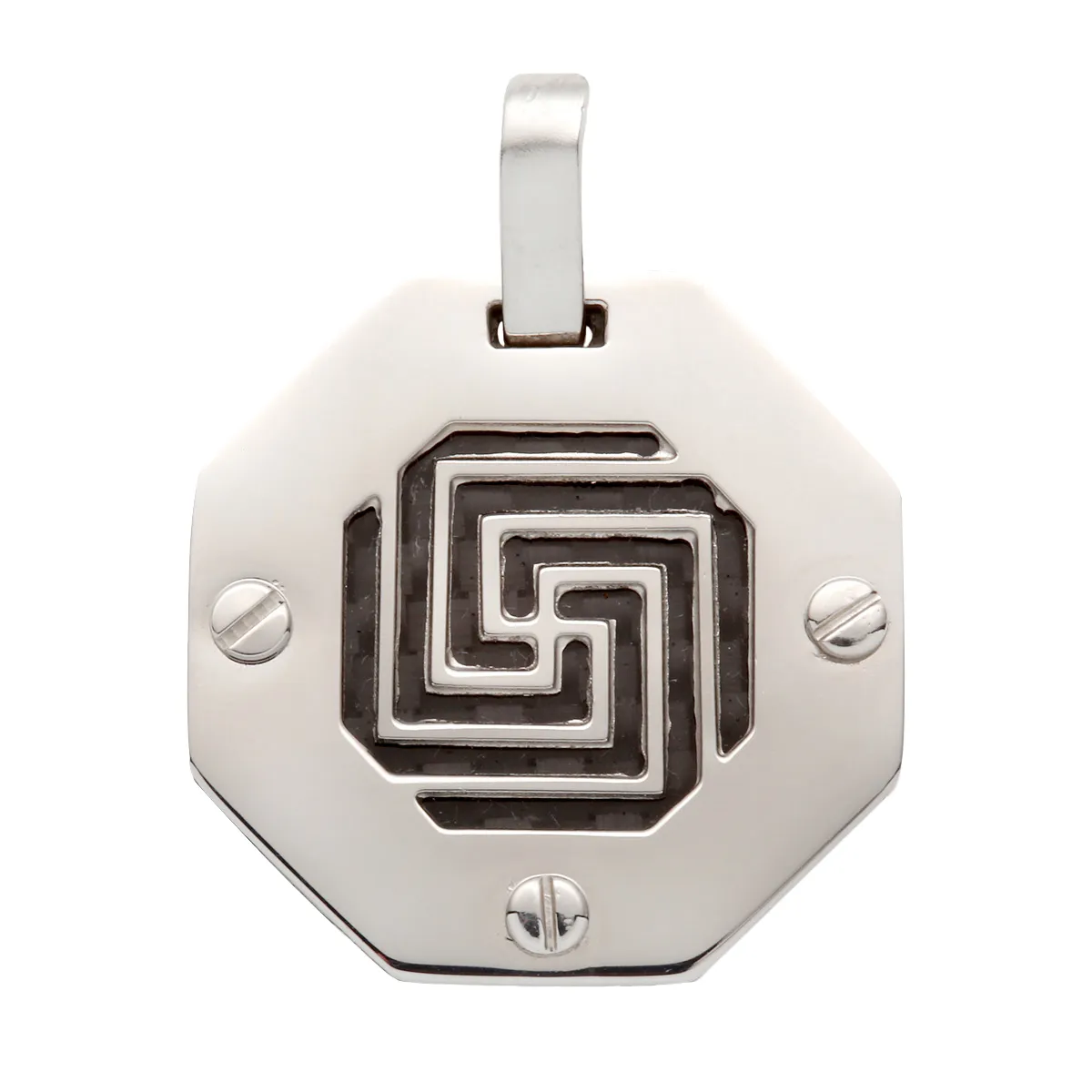 Ανδρικό Μενταγιόν από ανοξείδωτο ατσάλι και σχέδιο λαβύρινθου από ανθρακόνημα