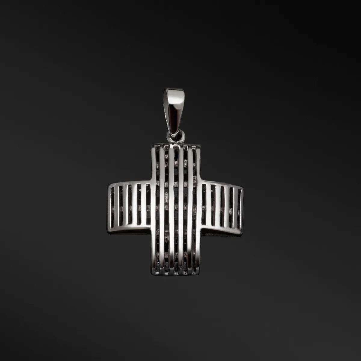 TRIBUTE, 925ασημένιο, αντρικό, μενταγιόν- σταυρός με άσπρο επιπλατίνωμα