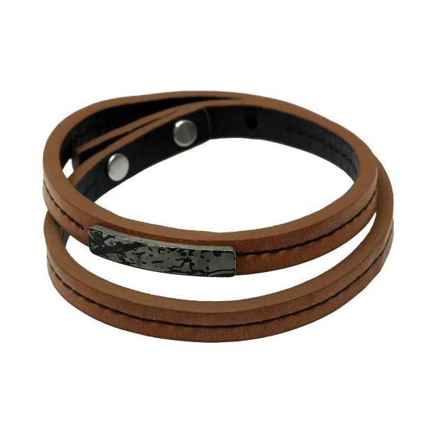 Βραχιόλι, ανδρικό από ανοξείδωτο ατσάλι με καφέ δέρμα, φοριέται διπλό χιαστί, free size, TRIBUTE ,