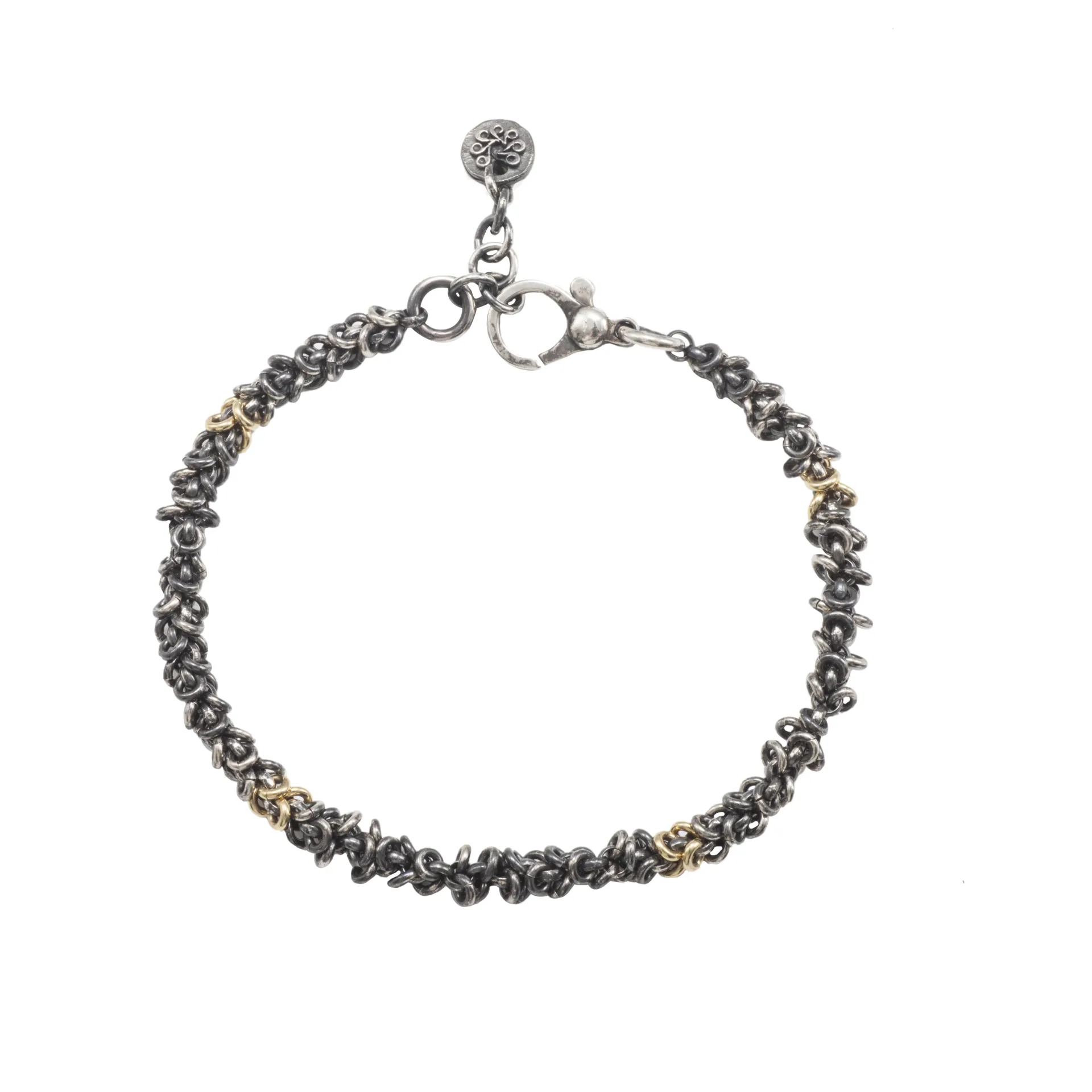 TRIBUTE, ανδρικό βραχιόλι με 925 ασήμι, κίτρινο χρυσό 18 Καρατίων & μαύρο ρόδιο,0230399201