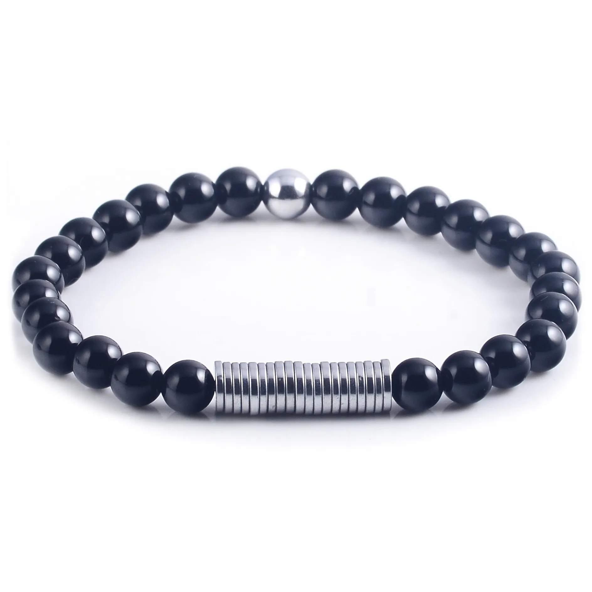 Ανδρικό βραχιόλι με ανοξείδωτο ατσάλι & μαύρο όνυχα,free size,TRIBUTE,0230444801