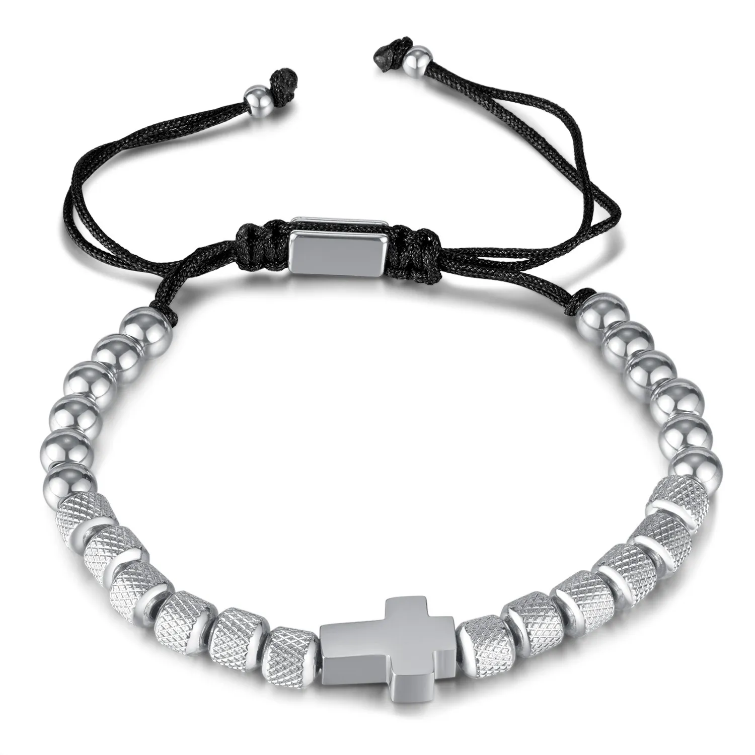 Ανδρικό βραχιόλι ατσάλινο, free size, μακραμέ με σταυρό,TRIBUTE, 0230450201