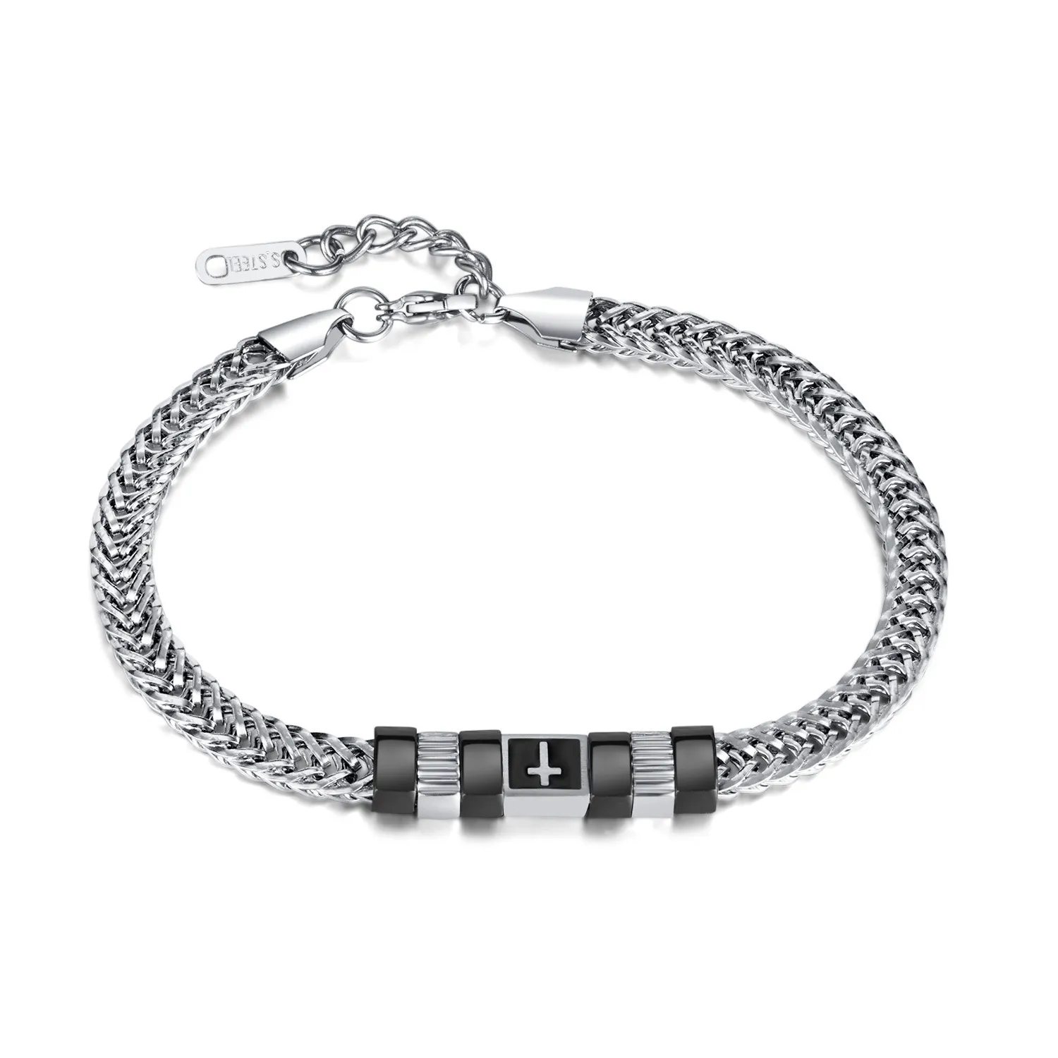 Ανδρικό βραχιόλι από ανοξείδωτο ατσάλι 21+3 εκατοστών με σταυρό, TRIBUTE, 0230450001
