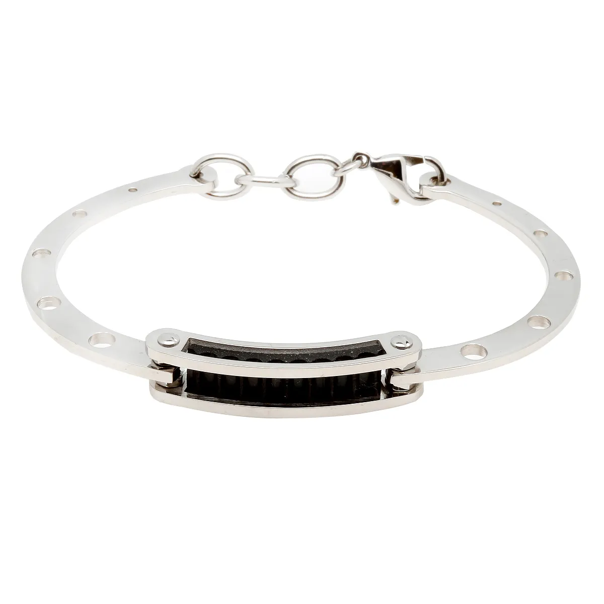 Ανδρική χειροπέδα από ανοξείδωτο ατσάλι με λεπτομέρειες από ανθρακόνημα.