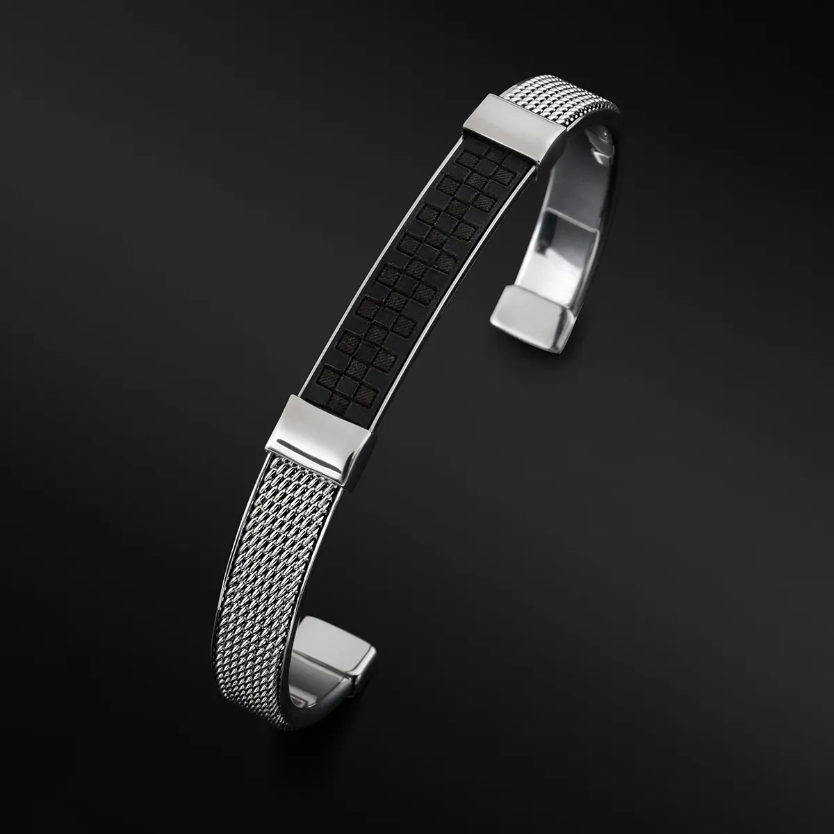 TRIBUTE, αντρικό, βραχιόλι/χειροπέδα με μαύρο, καουτσούκ & ανοξείδωτο ατσάλι