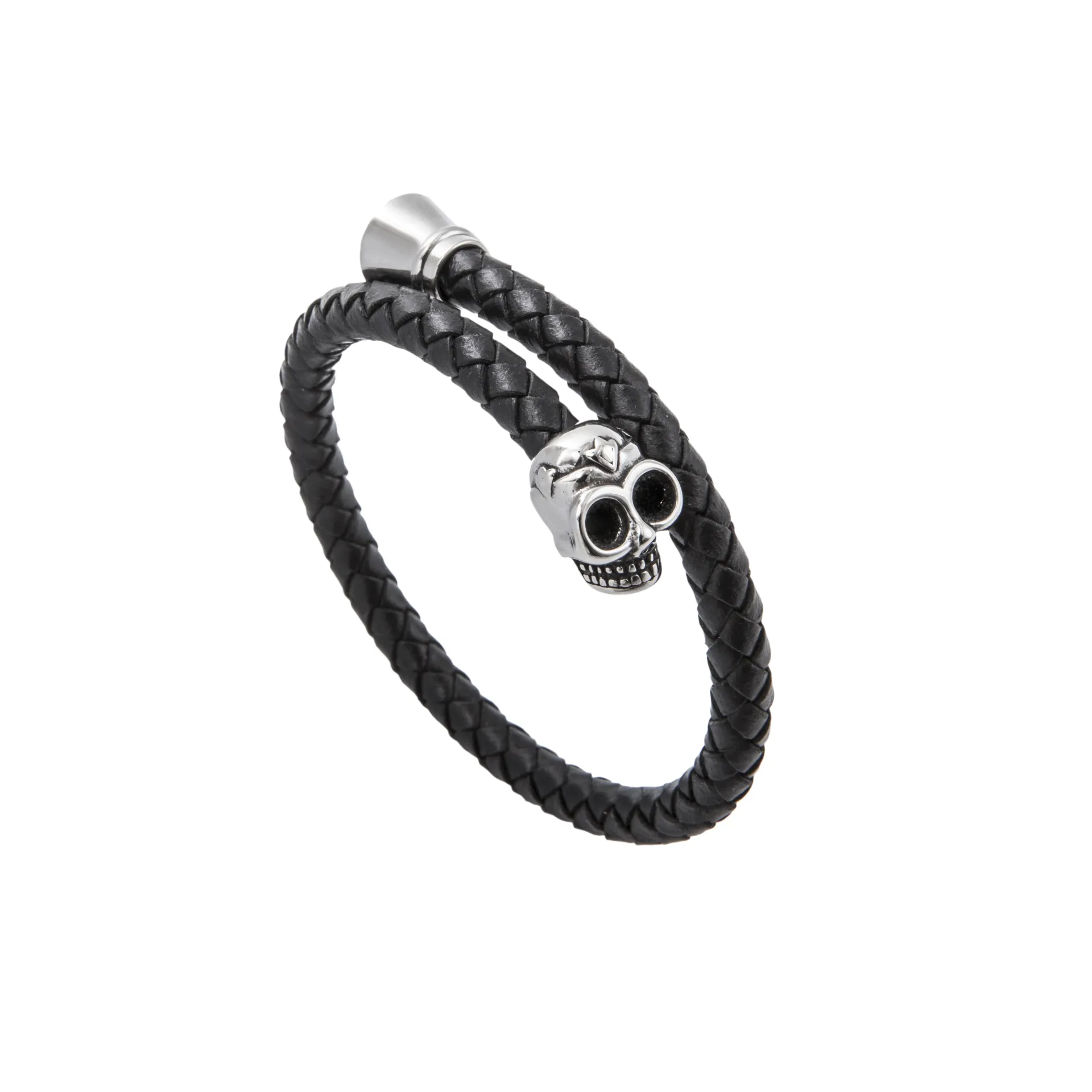Ανδρικό βραχιόλι, χειροπέδα δερμάτινη με ανοξείδωτο ατσάλι & νεκροκεφαλή, free size,TRIBUTE,0230446001