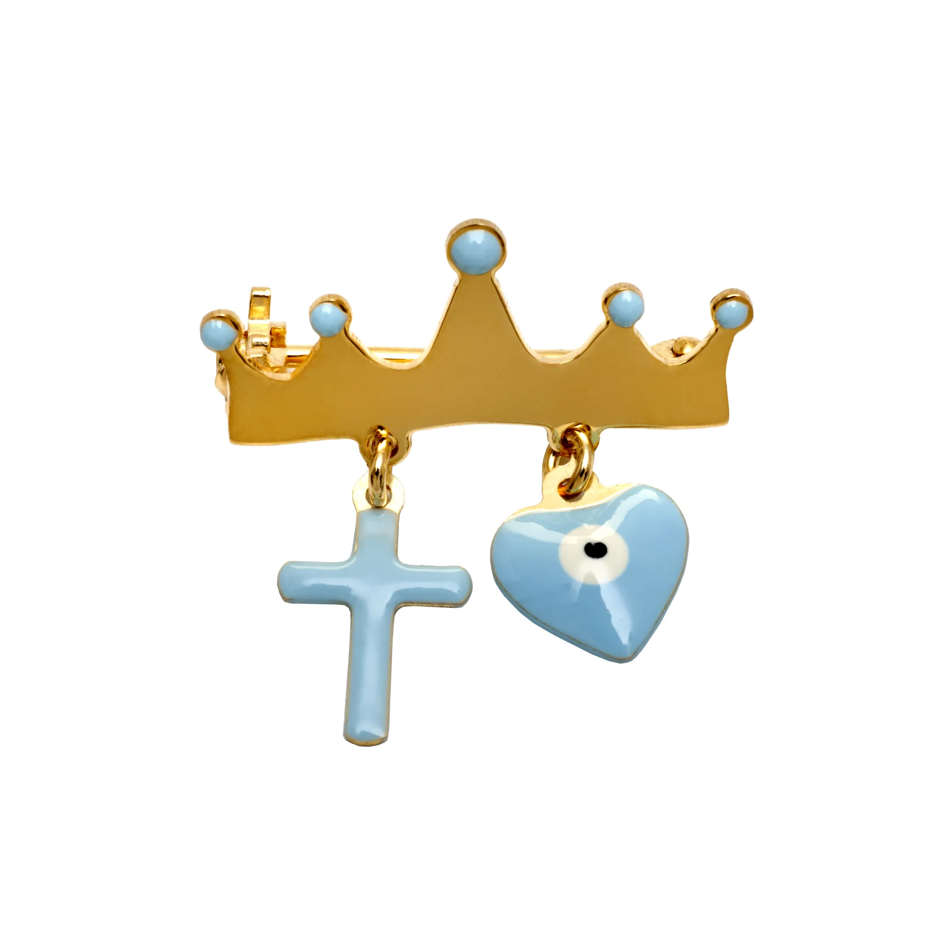 woofie, ασημένια, παιδική, καρφίτσα για νεογέννητα αγόρια με σμάλτο, "σταυρό", "καρδιά", "μάτι βασκανίας", "κορώνα", επιπλατινωμένη ή επιχρυσωμένη-07301411022