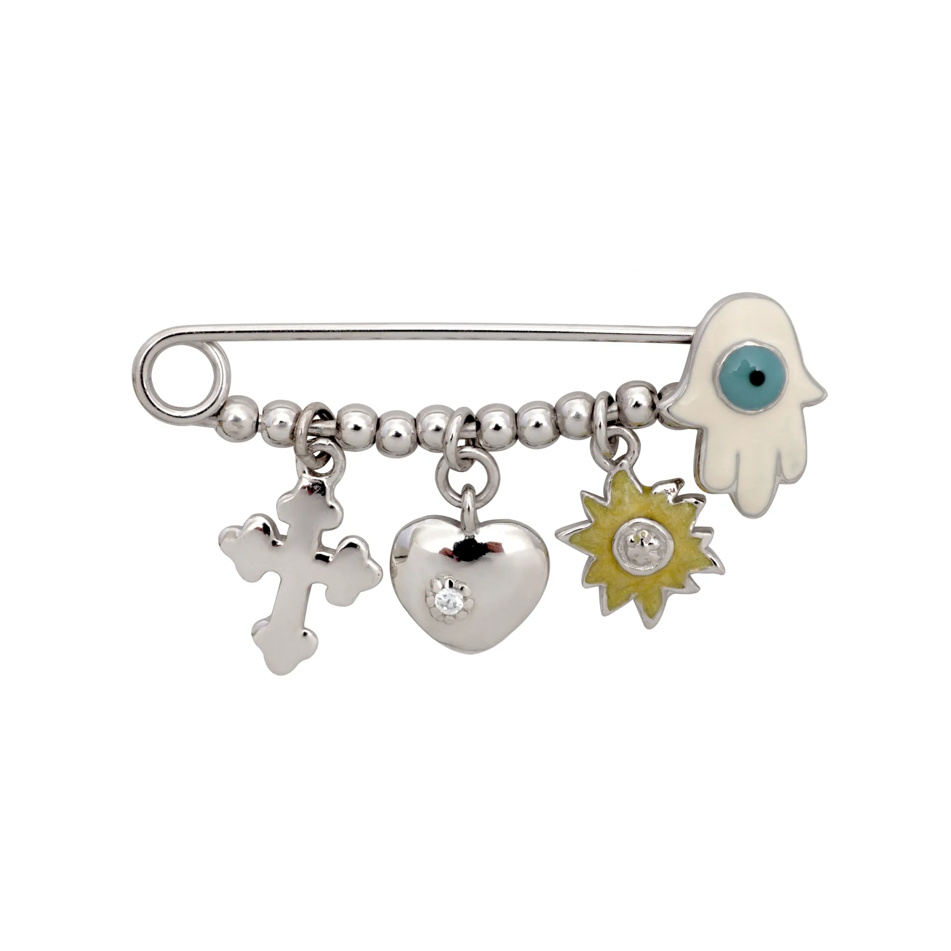 woofie, ασημένια, παιδική, καρφίτσα για νεογέννητα με σμάλτο, "σταυρό", "καρδιά", "μάτι βασκανίας", "χεράκι φατμά", επιπλατινωμένη-0730134501