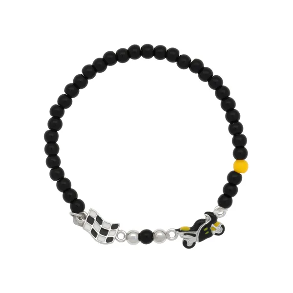 925 ασημένιο παιδικό βραχιόλι, επιπλατινωμένο χωρίς νικέλιο με σμάλτο, μηχανή, σημαία & μπρασελέ από χάντρες