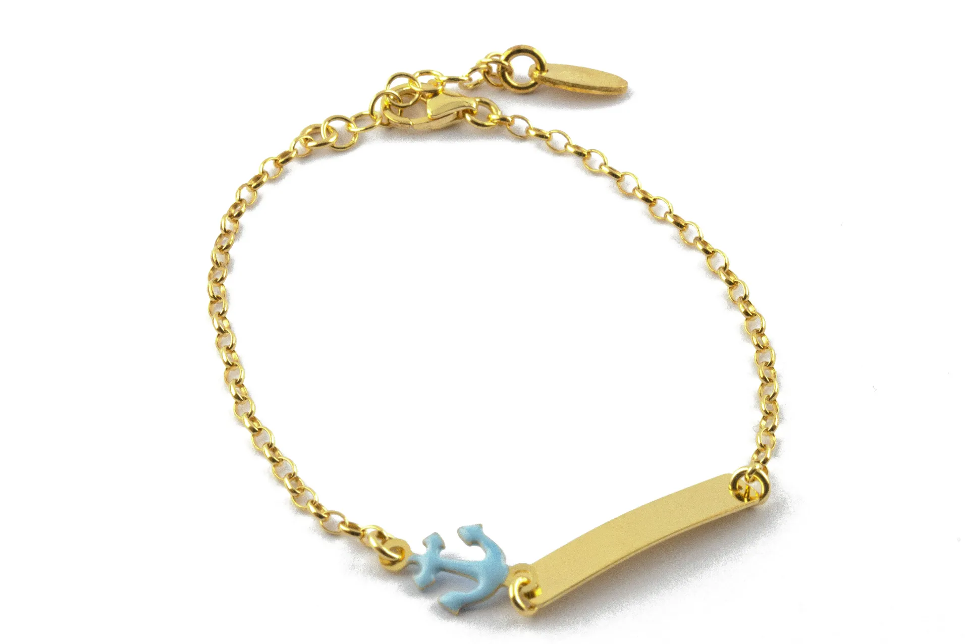 Woofie, ασημένιο ,παιδικό ,βραχιόλι ,ταυτότητα, με σμάλτο & "άγκυρα" σε γαλάζιο χρώμα για αγόρια, επιχρυσωμένο ή επιπλατινωμένο χωρίς νικέλιο