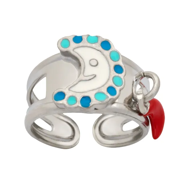 925 ασημένιο, επιπλατινωμένο παιδικό δαχτυλίδι με σμάλτο & κρεμαστό στοιχείο φεγγάρι