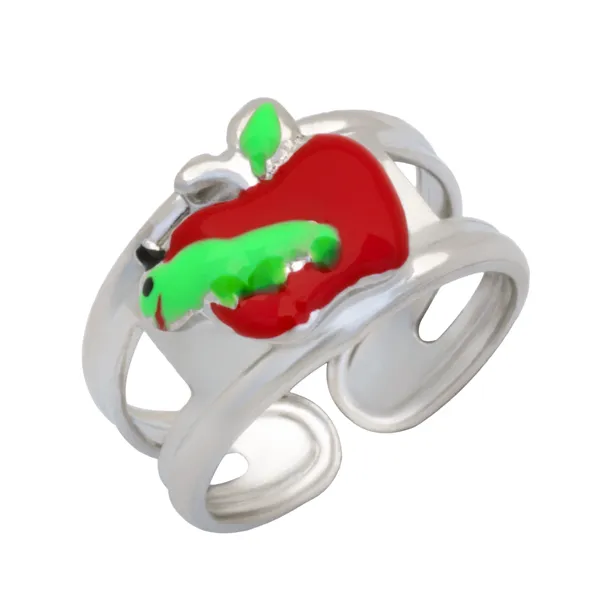 Woofie, Ασημένιο Παιδικό Δαχτυλίδι για κορίτσια, με σμάλτο, μήλο & άσπρο επιπλατίνωμα