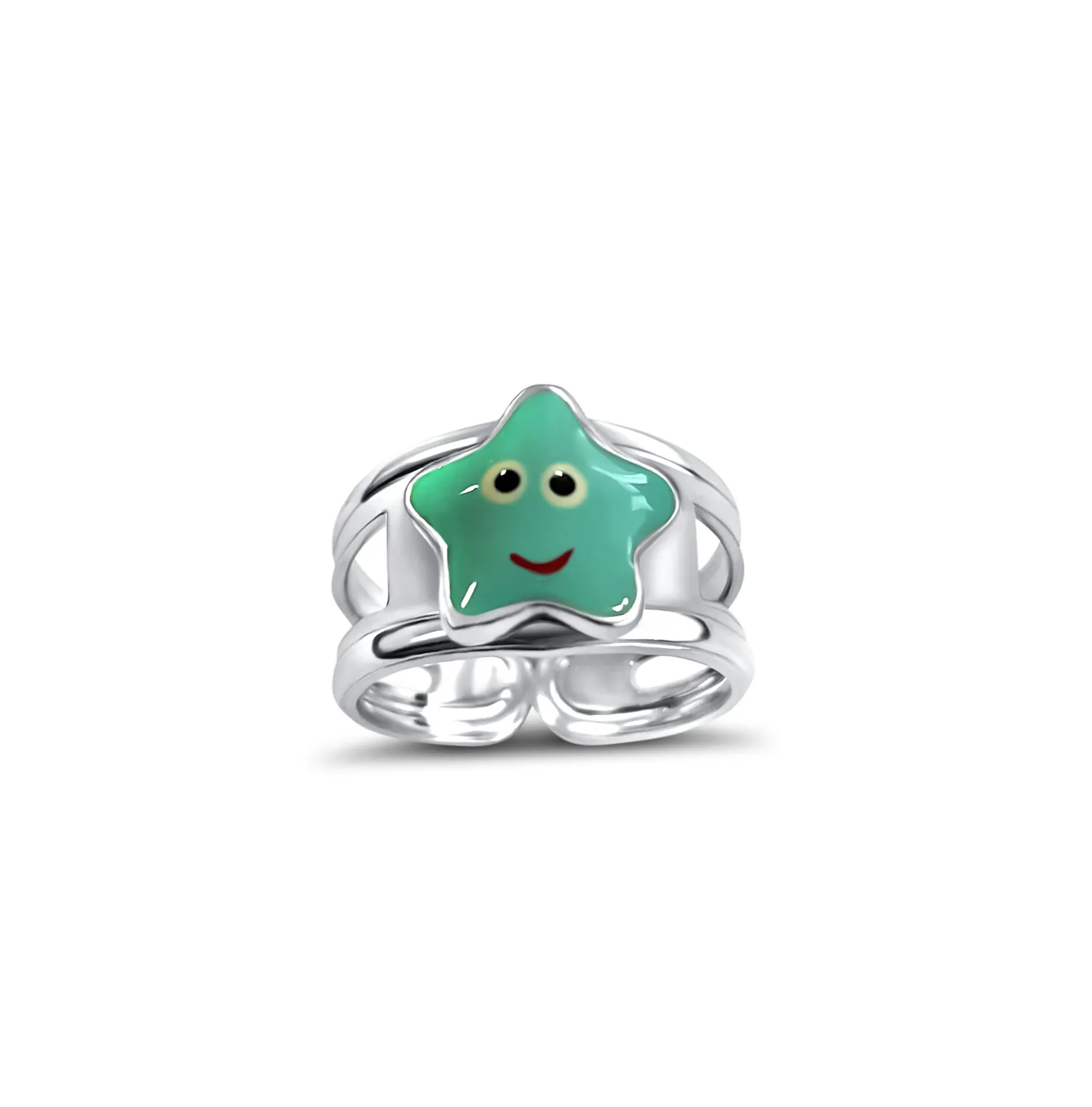 Δαχτυλίδι, παιδικό, για κορίτσια, ασημένιο, επιπλατινωμένο με αστερία, αστέρι από σμάλτο, free size, woofie, 043541901,