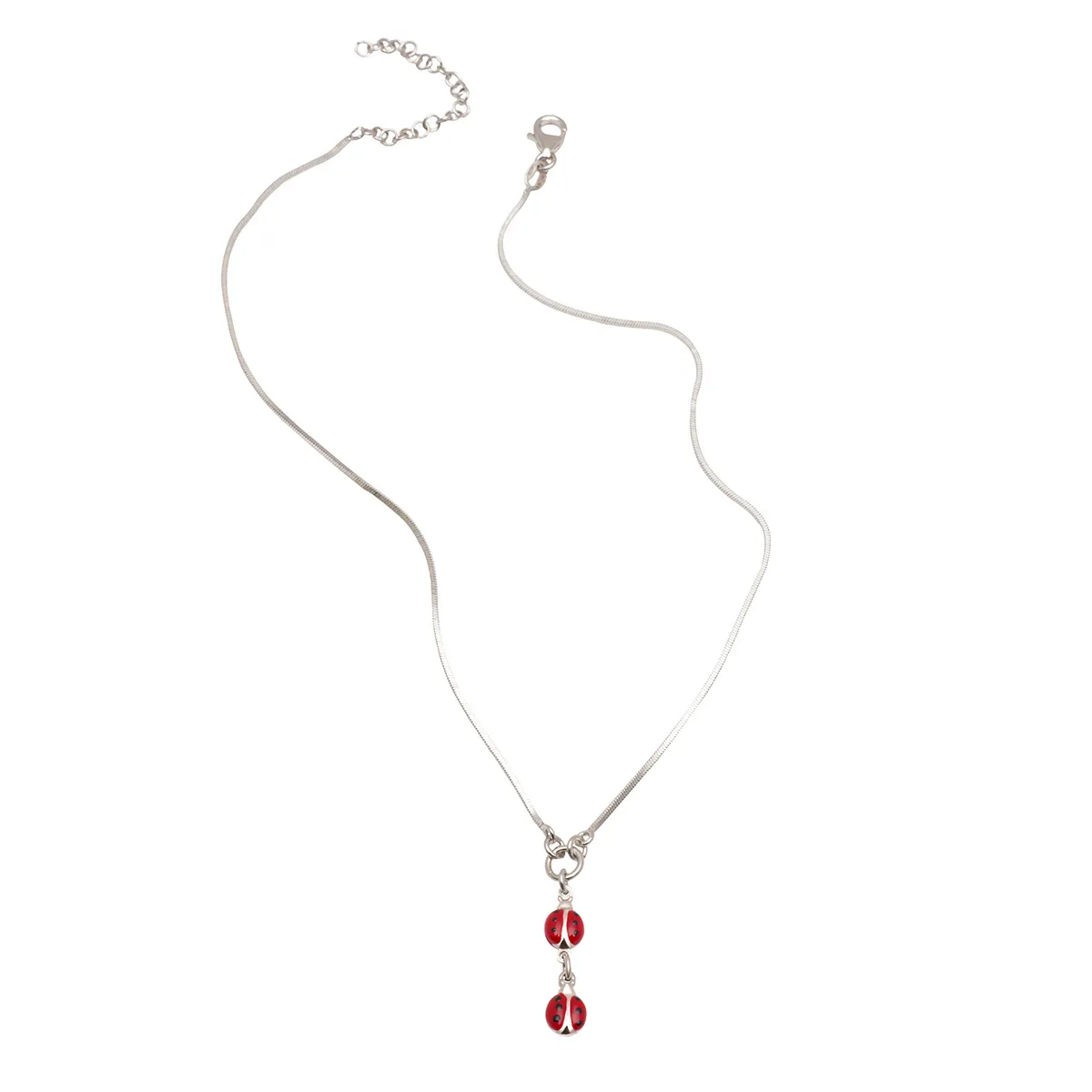 925 ασημένιο κολιέ με σμάλτο για κορίτσια με άσπρο επιπλατίνωμα & πασχαλίτσα