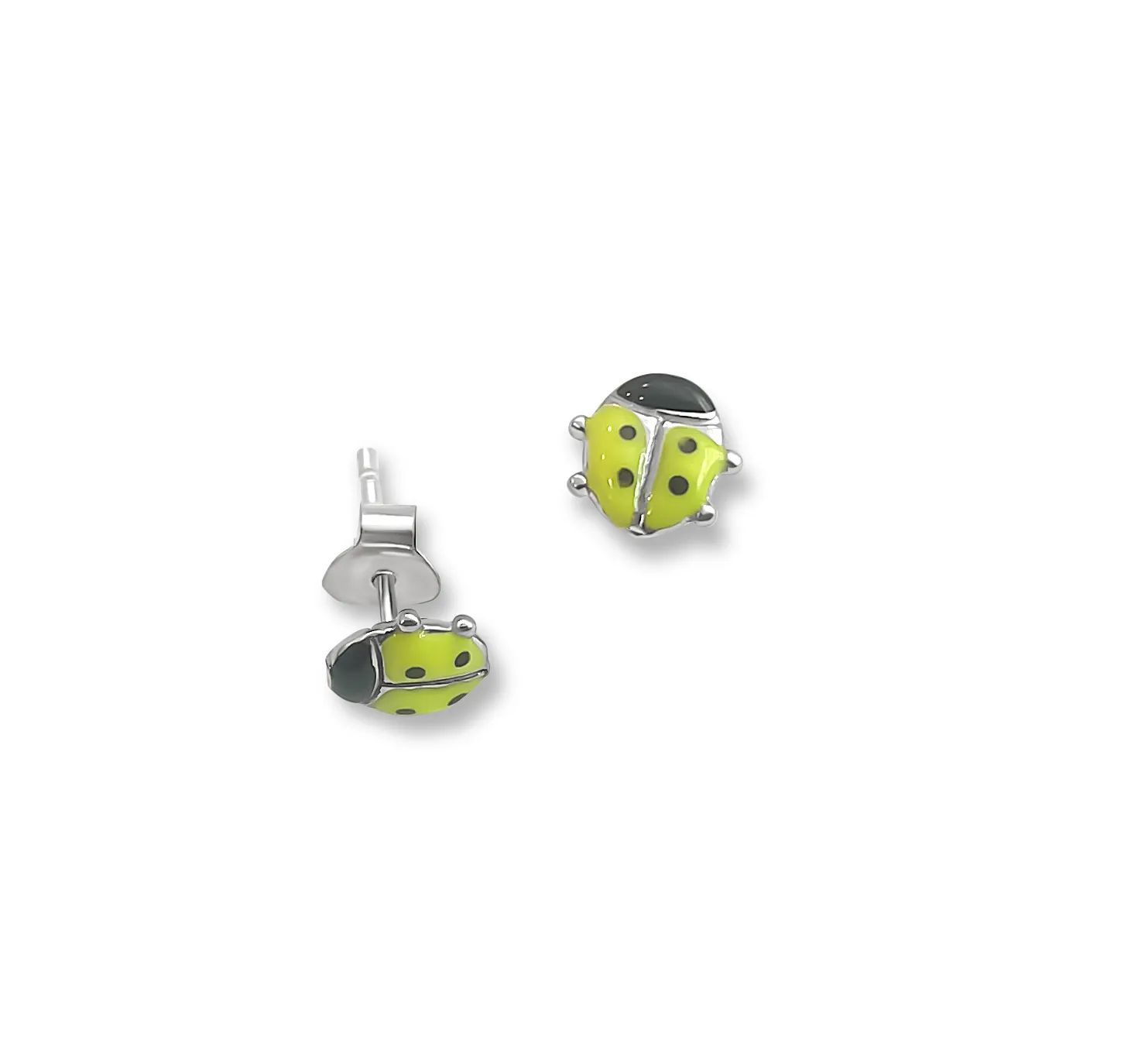 Σκουλαρίκια, παιδικά, για κορίτσια, ασημένια, με σμάλτο, πασχαλίτσες, επιπλατινωμένα, καρφωτά, woofie,0130521901