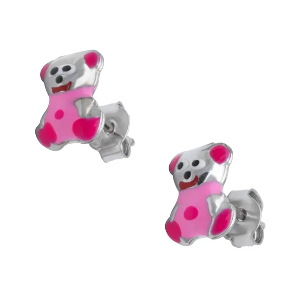 925 ασημένια παιδικά σκουλαρίκια επιπλατινωμένα χωρίς νικέλιο με σμάλτο & σχέδιο αρκουδάκι