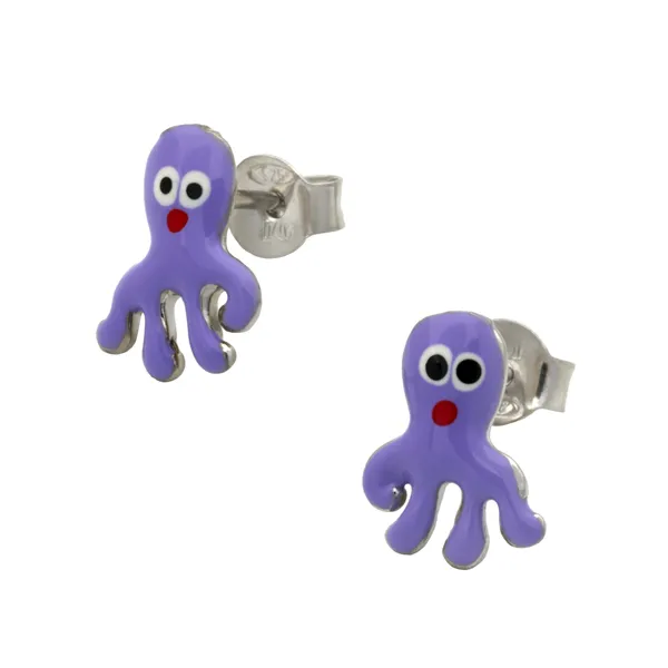 925 ασημένια παιδικά σκουλαρίκια επιπλατινωμένα χωρίς νικέλιο με σμάλτο & σχέδιο χταπόδι