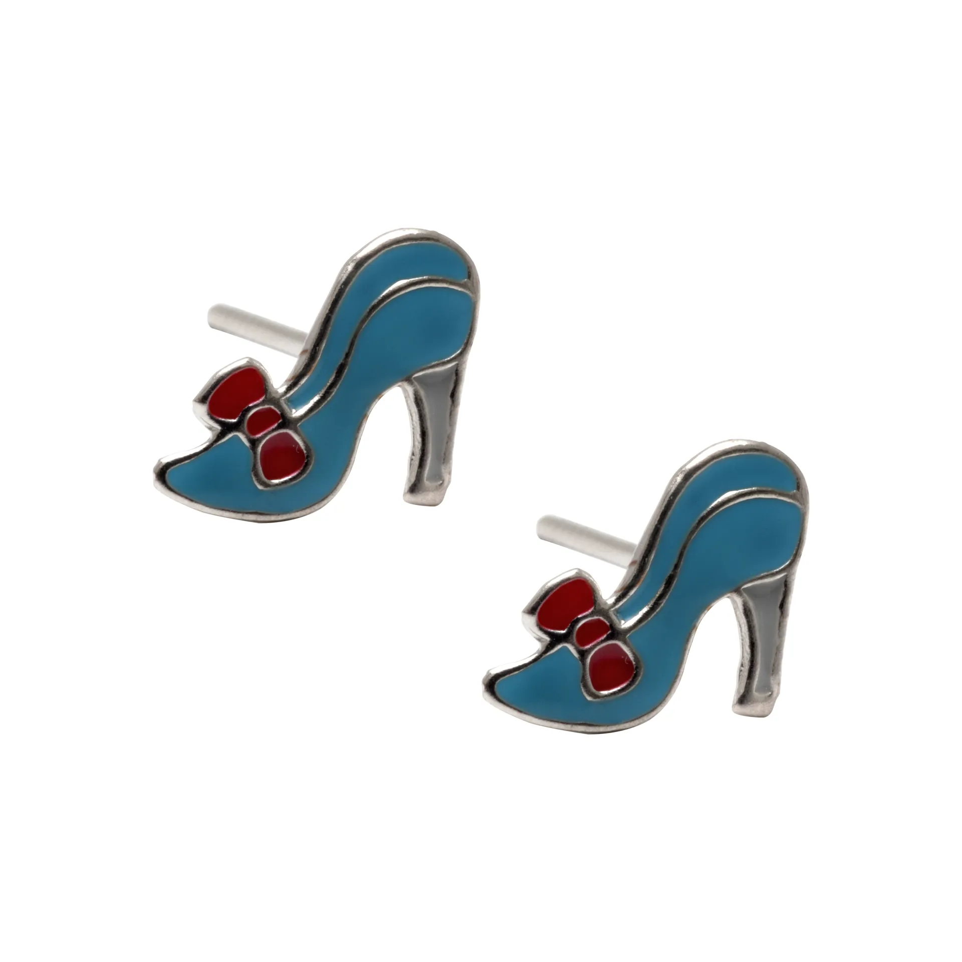 woofie ασημένια παιδικά σκουλαρίκια "γοβάκια" με άσπρο επιπλατίνωμα και σμάλτο