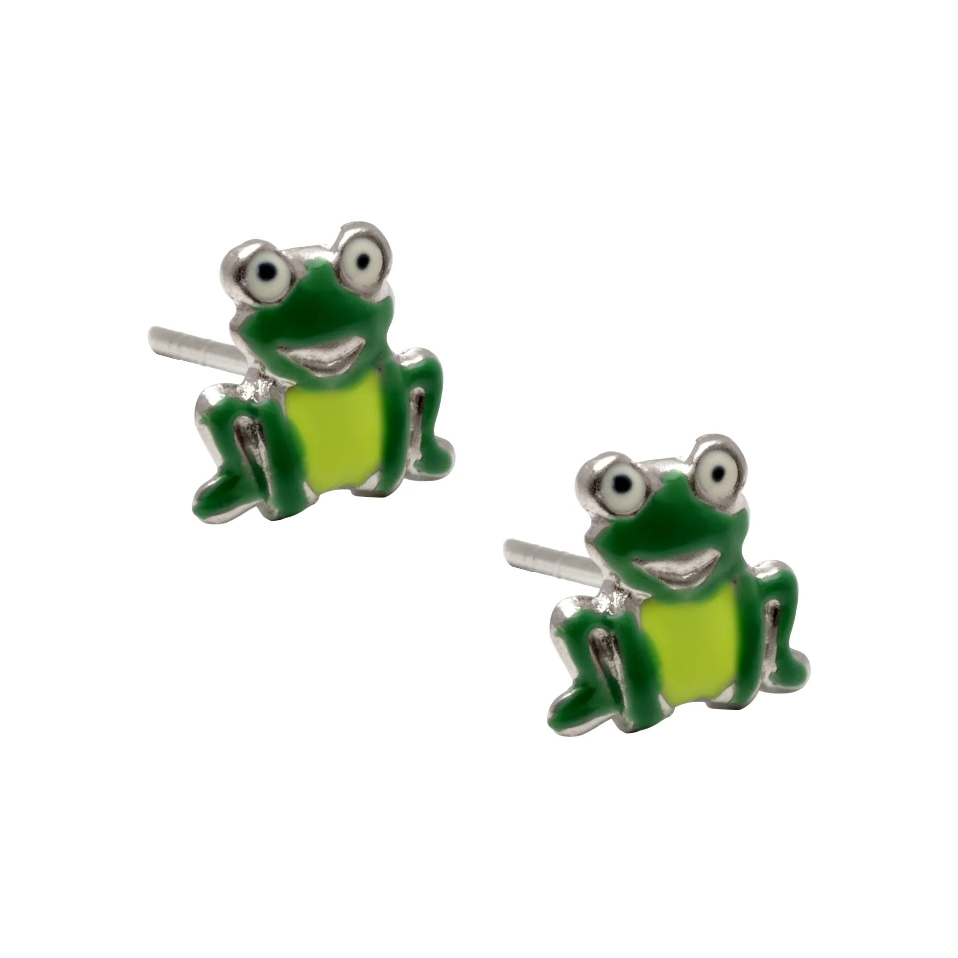 woofie ασημένια παιδικά σκουλαρίκια "βάτραχος" με άσπρο επιπλατίνωμα και σμάλτο-0130454401