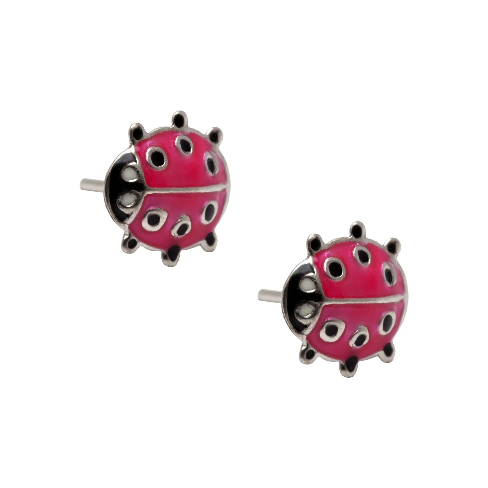 woofie ασημένια παιδικά σκουλαρίκια "πασχαλίτσα" με άσπρο επιπλατίνωμα και σμάλτο-0130453702