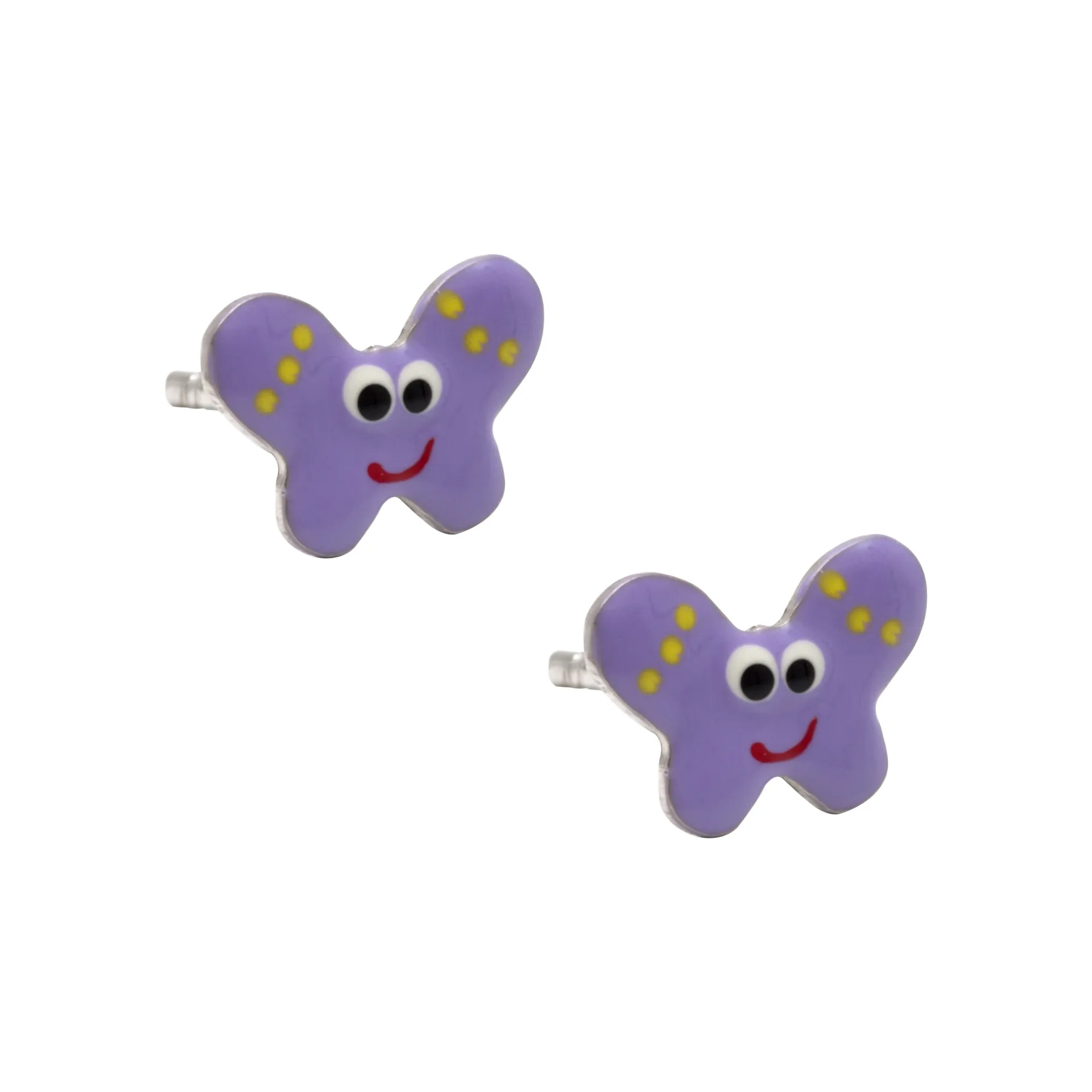 Ασημένια, παιδικά σκουλαρίκια woofie "πεταλούδα" με μωβ σμάλτο, επιπλατινωμένα-0130526201