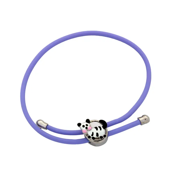 woofie, ασημένιο ,παιδικό βραχιόλι για κορίτσια με σμάλτο, άσπρο επιπλατίνωμα, κούμπωμα ασφαλείας, μωβ καουτσούκ και γάτα
