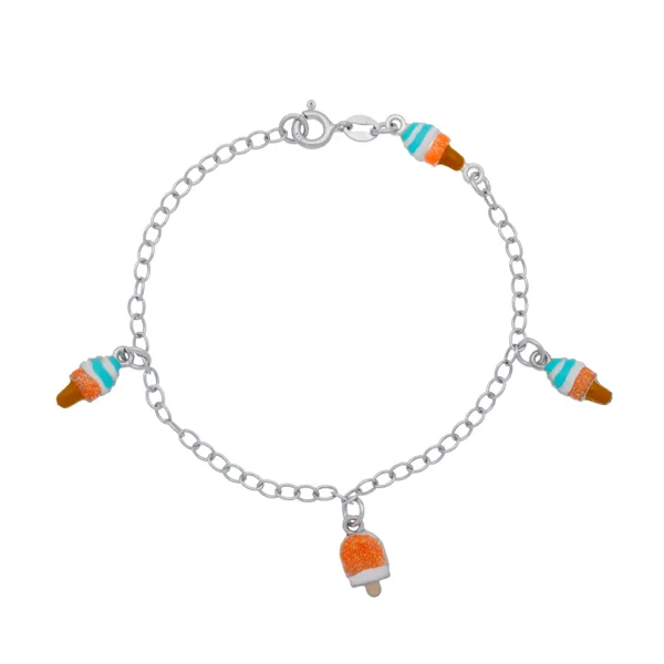 925 ασημένιο παιδικό βραχιόλι, επιπλατινωμένο χωρίς νικέλιο με σμάλτο, & κρεμαστά παγωτά