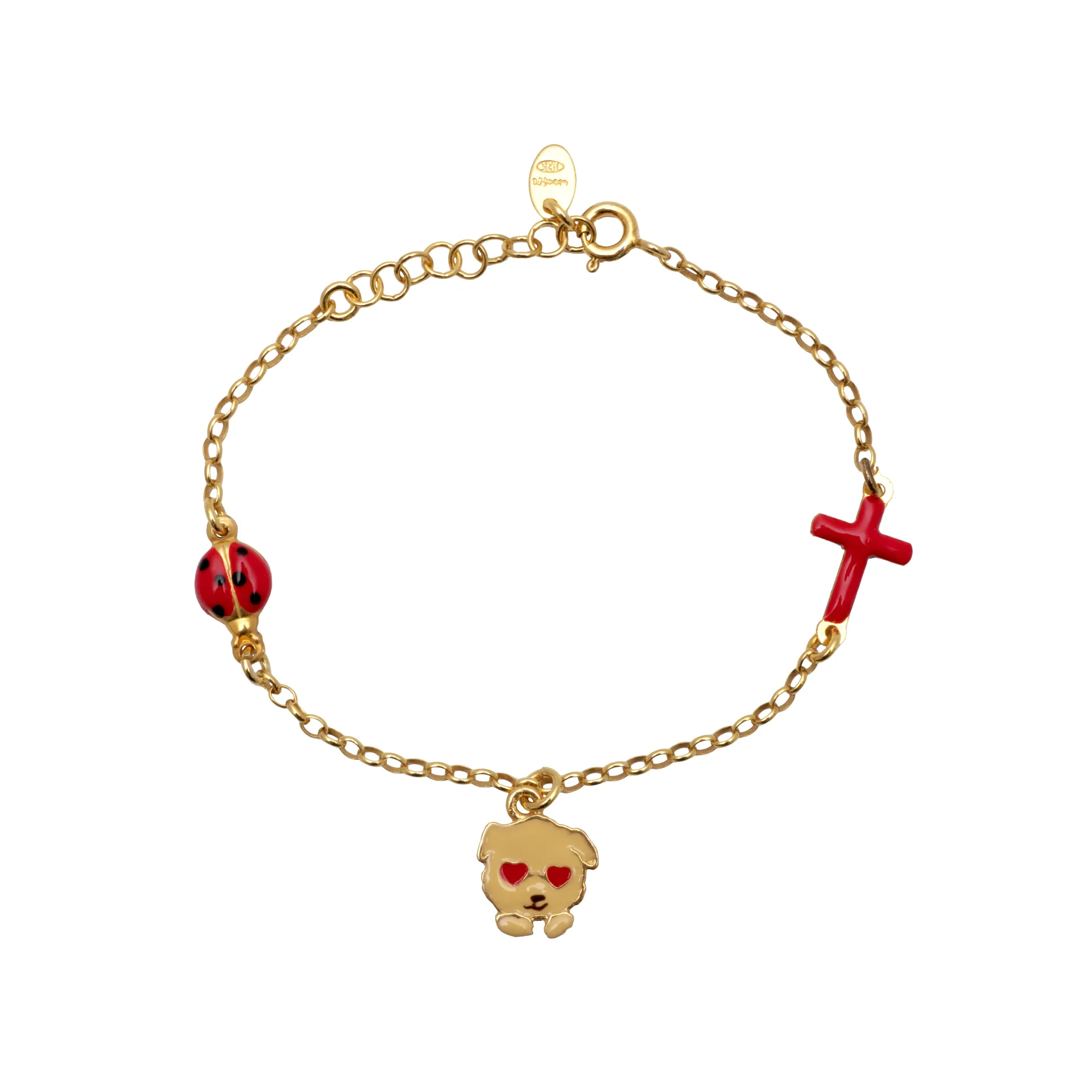 Woofie, ασημένιο, παιδικό, βραχιόλι, με σμάλτο & κίτρινο επιχρύσωμα