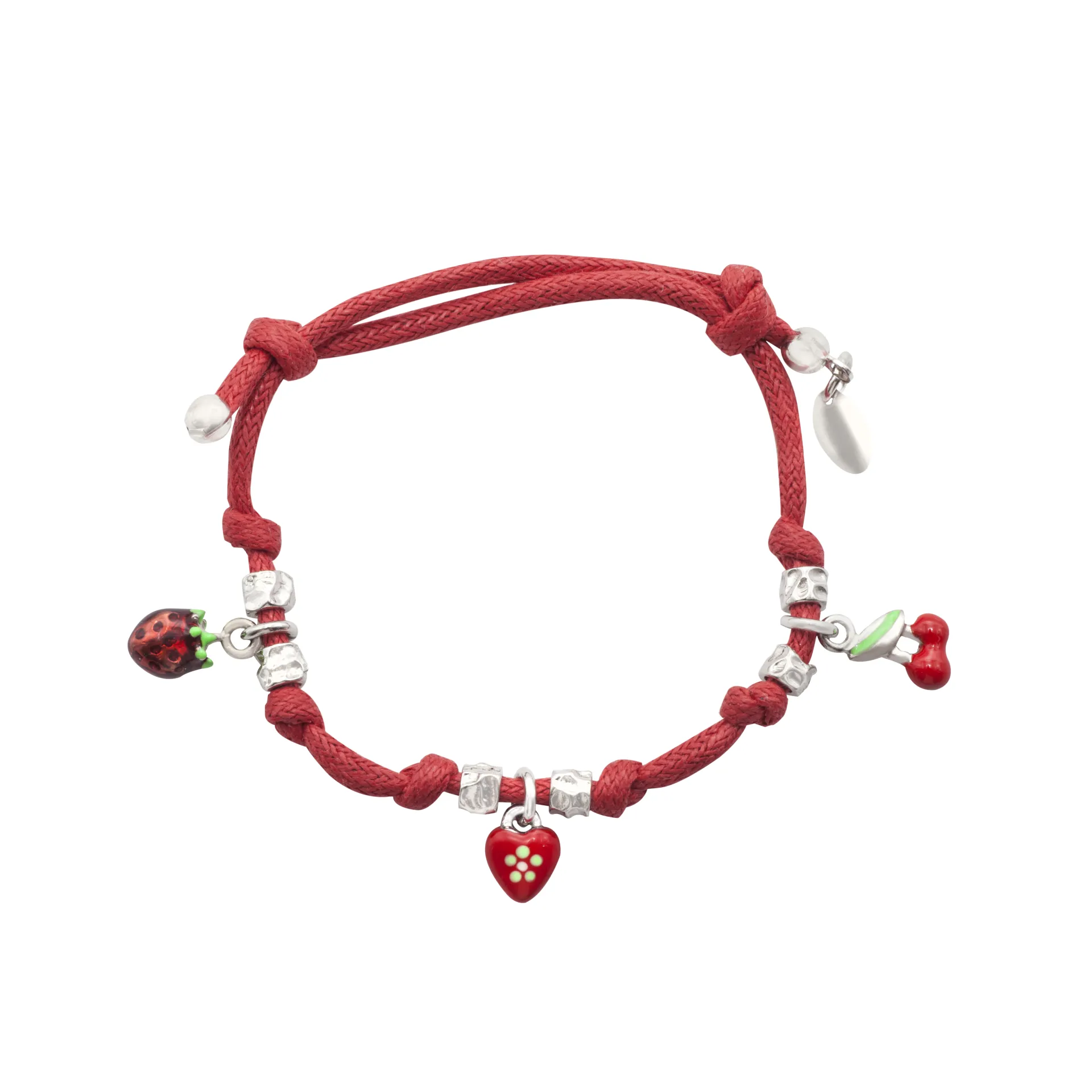 WOOFIE, 925, ασημένιο, παιδικό, βραχιόλι, καρδιά, κεράσι, φράουλα με άσπρο, επιπλατίνωμα,