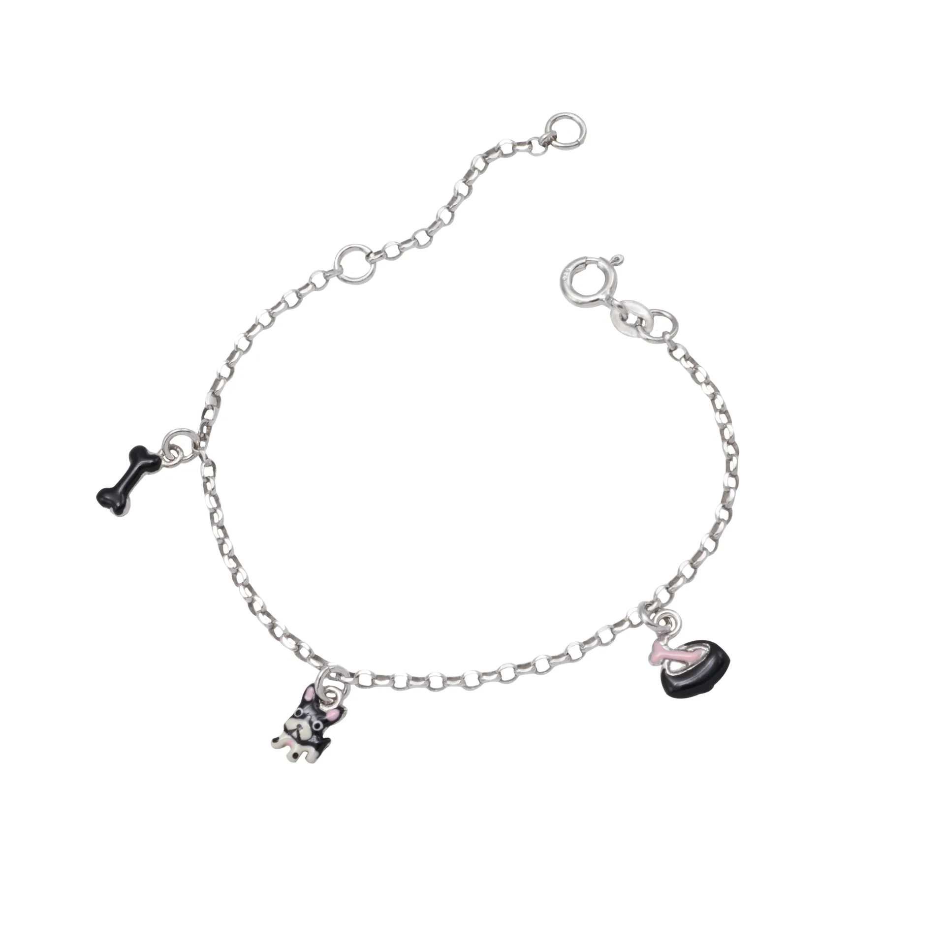 Woofie, ασημένιο, παιδικό, βραχιόλι, για, κορίτσια με σμάλτο, μπολάκι, σκύλου, σκύλο, κόκκαλο, άσπρο, επιπλατίνωμα,