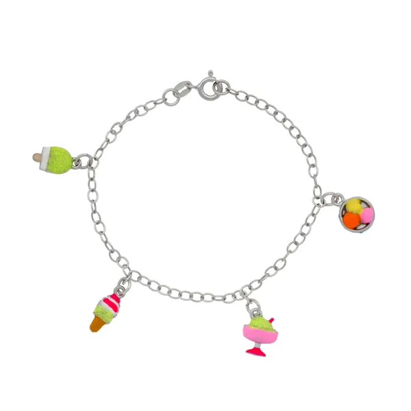 Woofie, ασημένιο, παιδικό, βραχιόλι, για, κορίτσια με σμάλτο, παγωτά, άσπρο, επιπλατίνωμα,