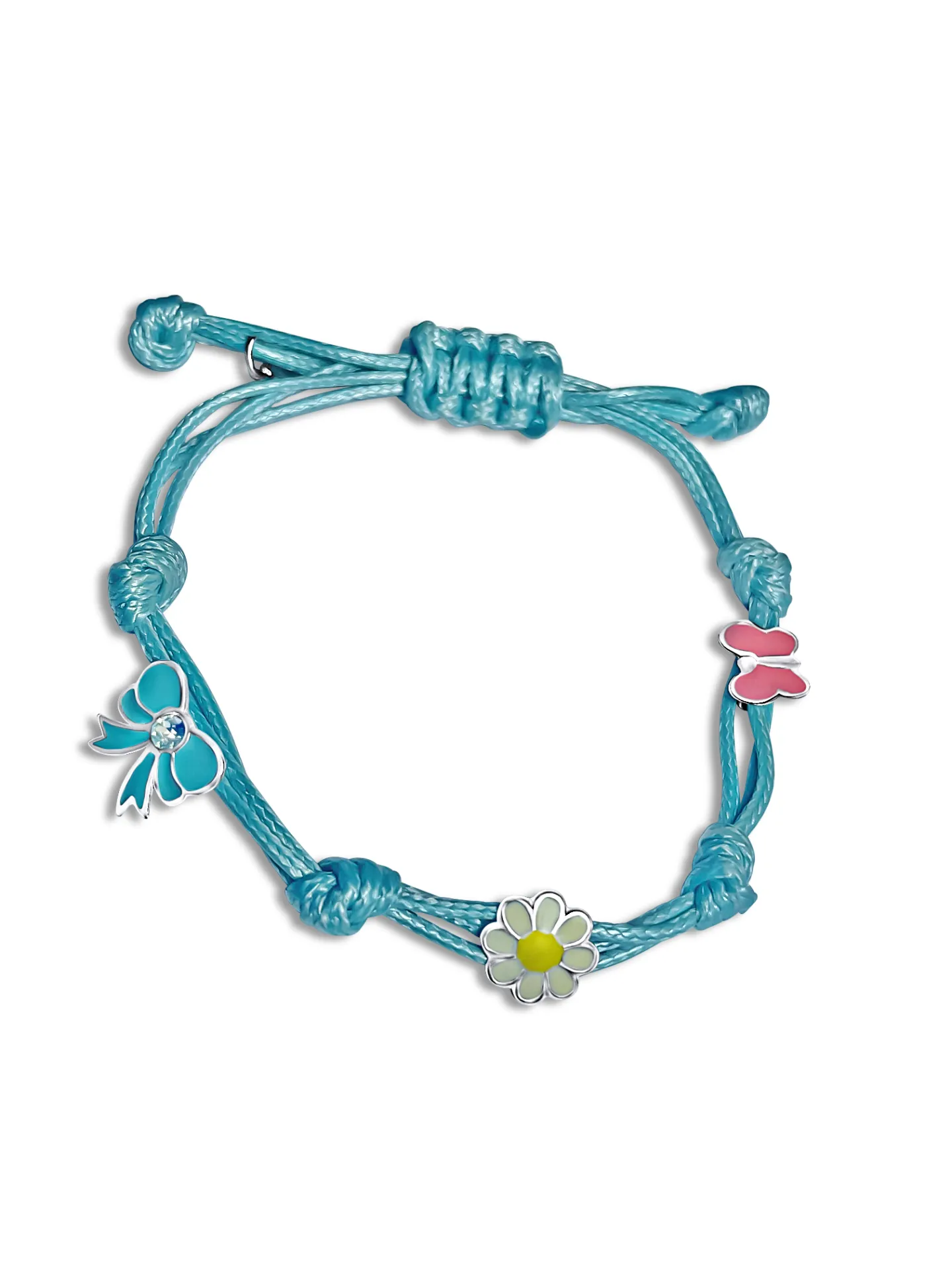Παιδικό, ασημένιο βραχιόλι για κορίτσια, με σμάλτο, μακραμέ κορδ΄΄ονι & λουλούδι, φιόγκο, πεταλούδα, woofie,0230358601