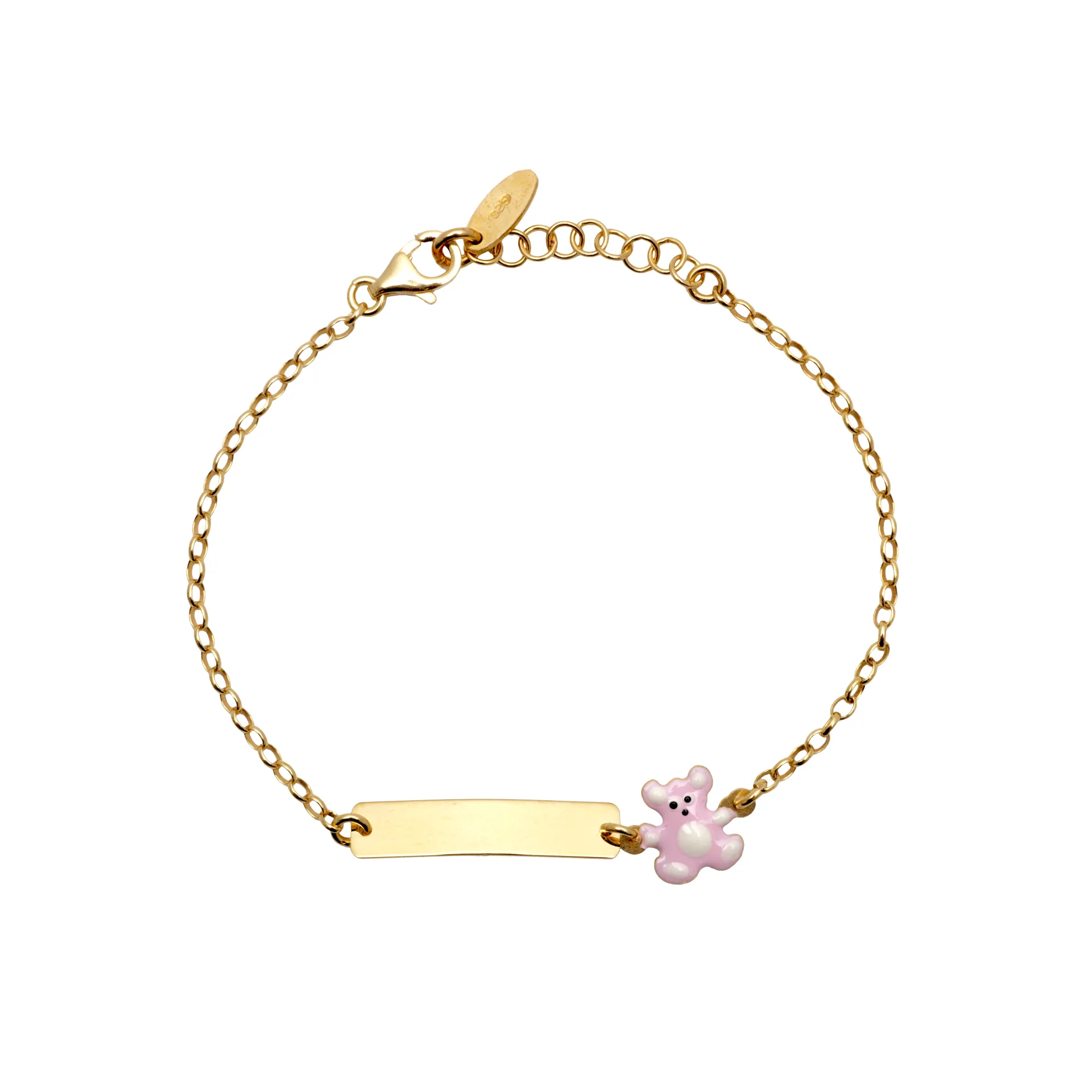 Βραχιόλι ,ασημένιο, παιδικό, για κορίτσια, ταυτότητα, με σμάλτο διπλής όψης & σχέδιο αρκουδάκι σε ροζ χρώμα, με κίτρινο επιχρύσωμα, 0230419201,